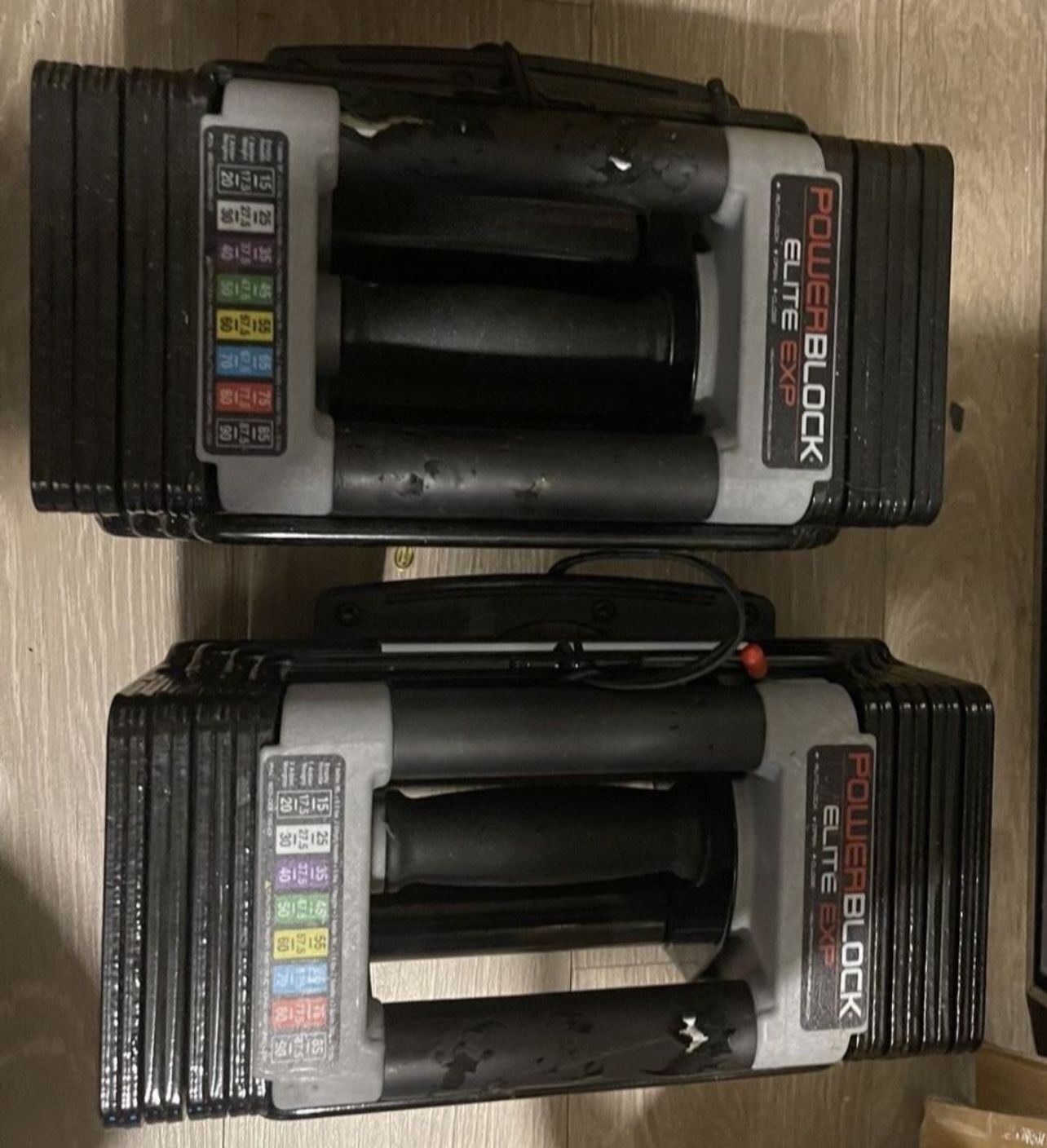 Power Block Elite Expandable Weight PowerBlock Elite EXP Dumbbells feature welded steel construction weight design. The weight plates are powder coated. Stage 1 starts at 5-50lb and is expandable up to 90lbs (see below). Ergonomic Handle The Elite EXP model's handles are a contoured, cylindrical handle with a 1.5″ (38mm) max diameter. The handle is set inside padded handles on each side of the dumbbell. Color Coded Side Rails Color bands correspond with the weight chart on the handle for easy weight ident