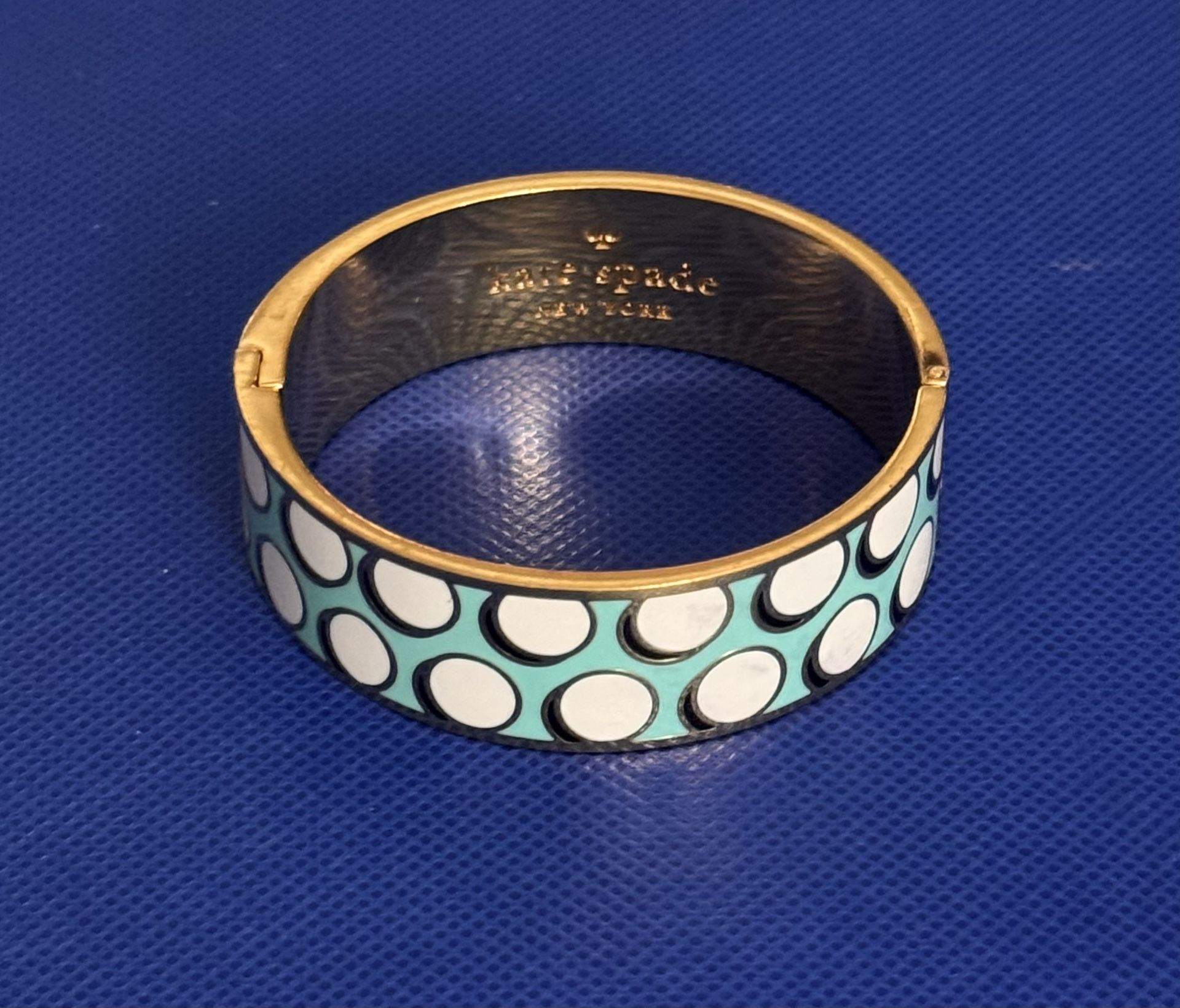 3/4" Wide Gold, White, Black & Tiffany Blue Enamel Hinged Bangle Cute Cute Cute Worn less than a hand full times
