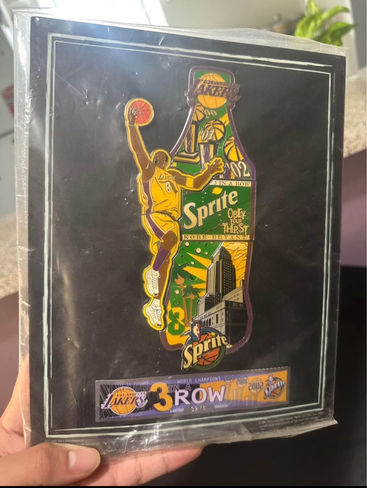 Kobe Bryant Sprite Bottle Pins That Stands Up Like A Picture Frame Or Can Be Take Apart. 8 Pins Total.