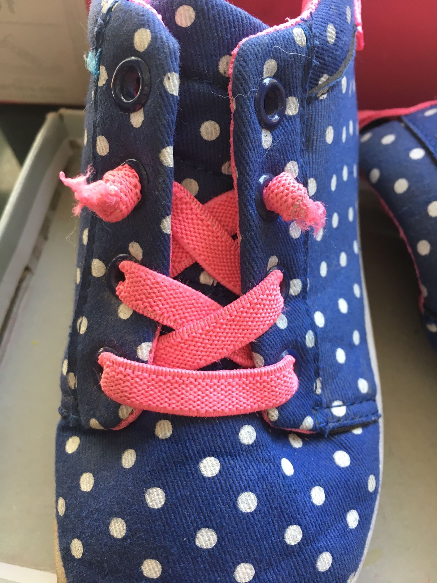Gently shoes with lots of kid in them. No rips or tears. Size 8 Toddler