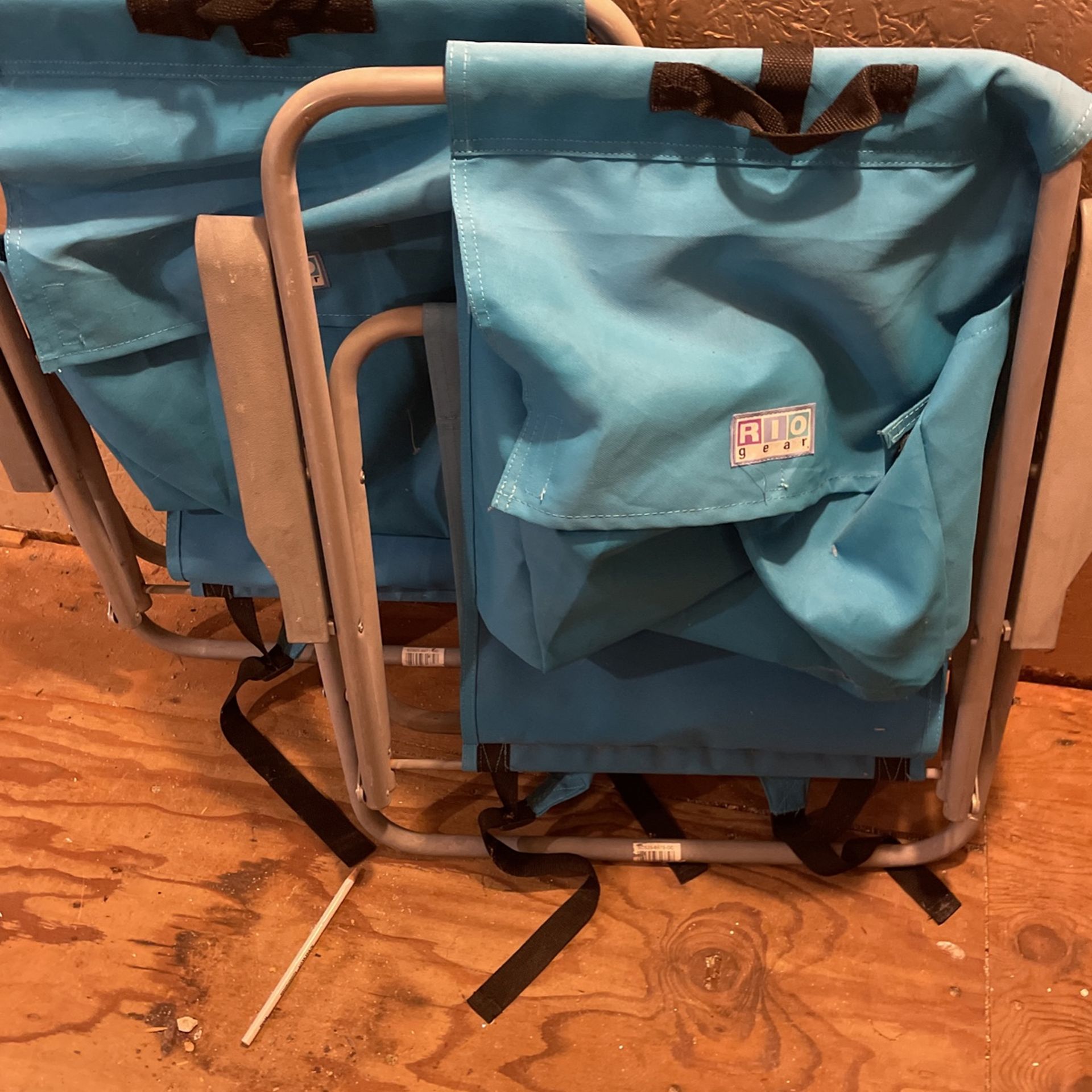 Lightweight folding beach chairs with backpack style carrying strap and large pouch to hold snacks, water, wallet, keys, phone, towel etc. pick up only.