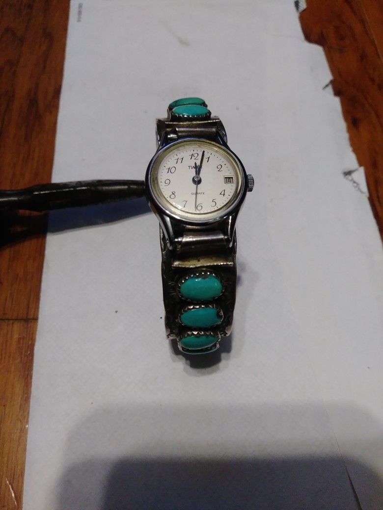 Sterling silver and turquoise FW Zuni watch band with working watch