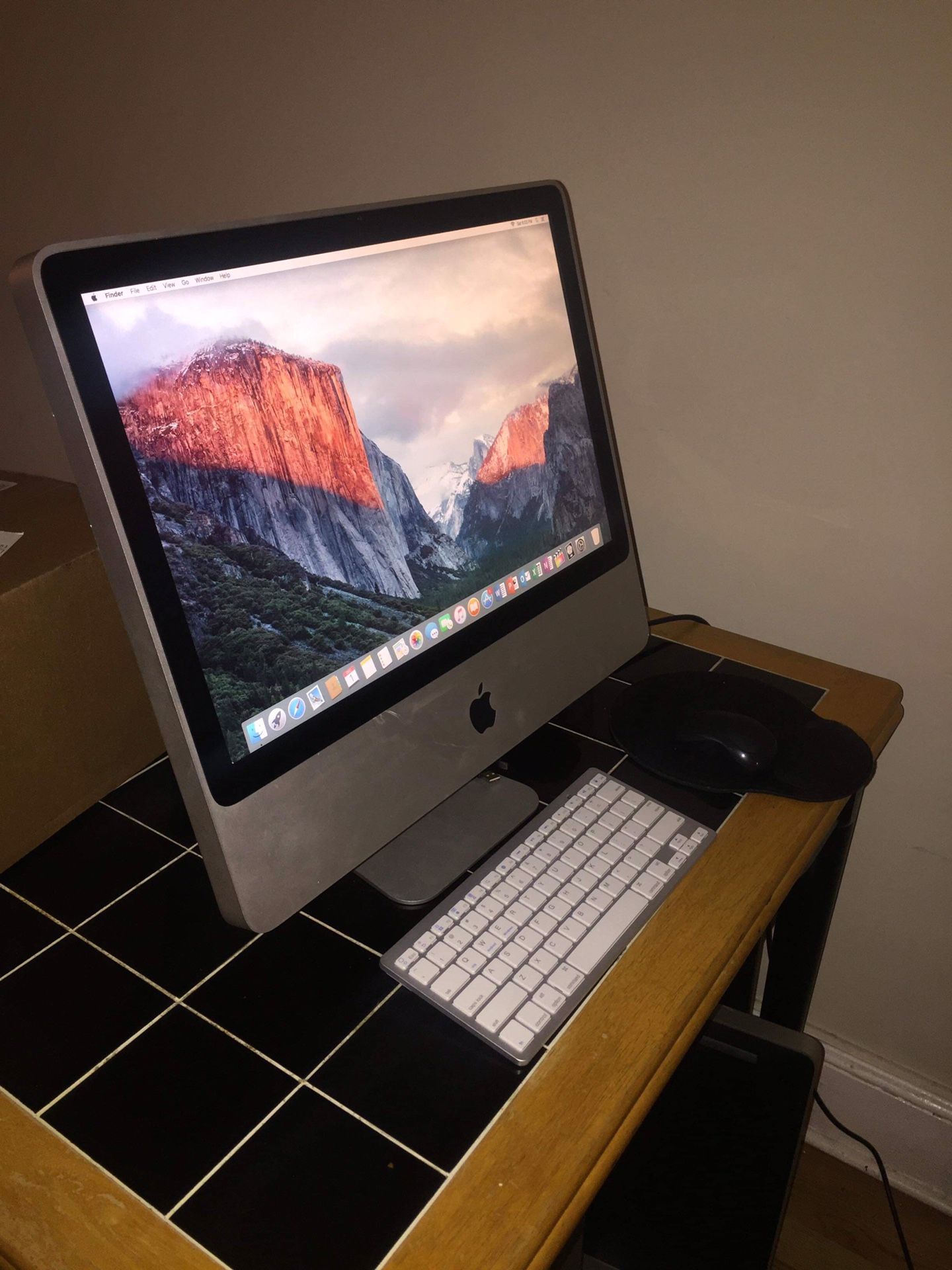 iMac 2009 20inch 4Ram 500 hard drive El Capitan office 2016 Logic Pro x music software Final Cut Editing software wireless keyboard and mouse CD rom and webcam works. I’m a tech so it’s all good