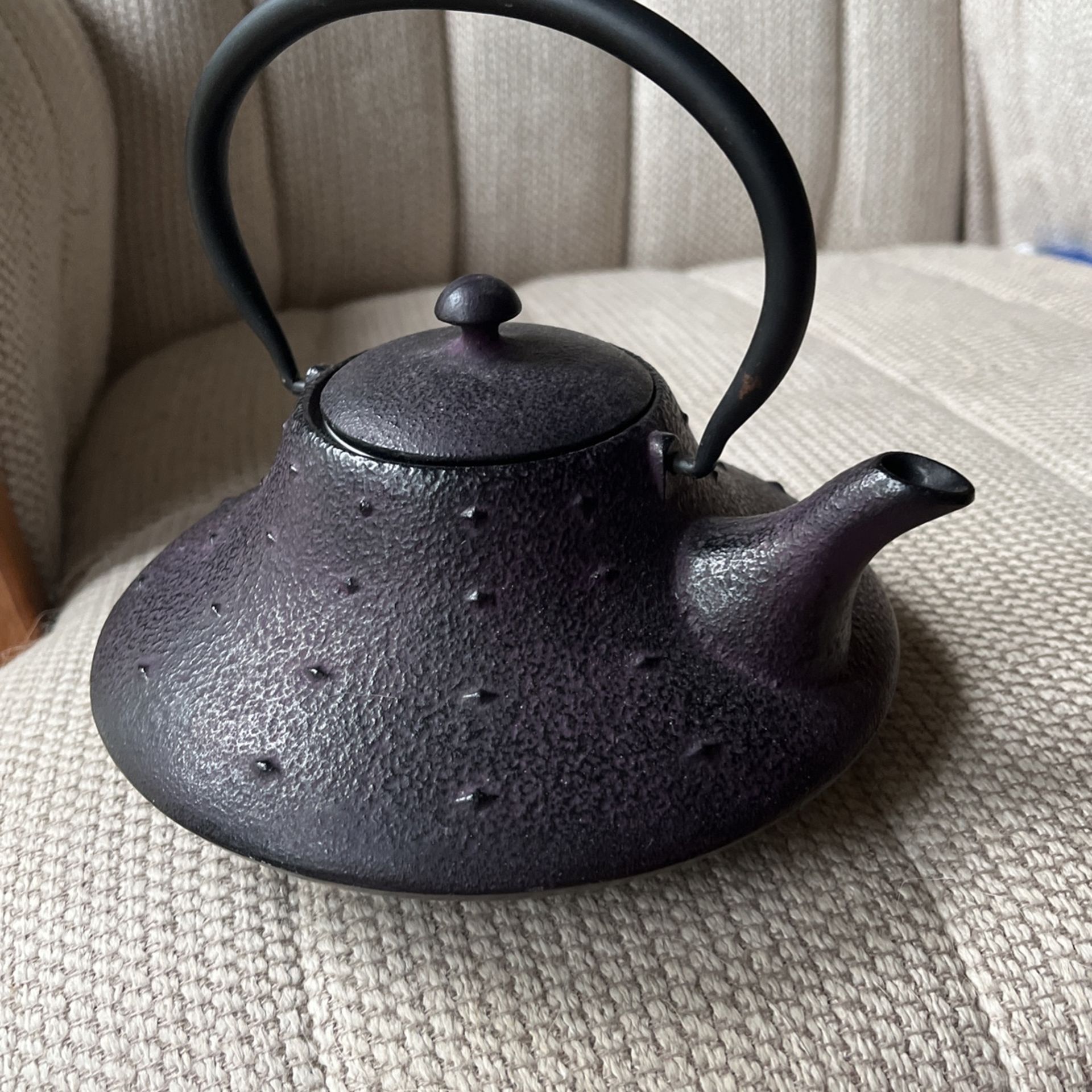 Vintage Asian Heavy cast iron,Teavana "Abundance" Cast Iron Tea Pot - Black - Made in Japan. NEW Never used. No rust. Wedding gift, just came out of storage. Must be at least 2-3 lbs. ? About 28 oz. Beautifully crafted with a strainer, to catch tea leaves. Dimensions of pot: 3 3/4” tall, to top of lid button. 6 1/4” to top of handle. Width: 7” to tip of spout, arm folds down. Retails for $147.00. Asking $25.00