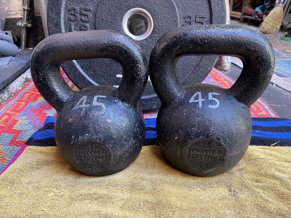 PAIR OF 45LB. KETTLEBELLS (Power Systems) • ALSO HAVE : 71s / 53s / 50s / 45s / 40s / 35 / 30s / 20s / 15s / 10s