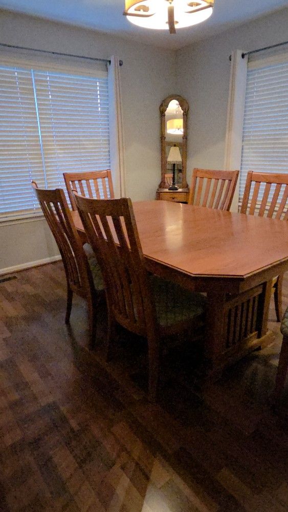 Mission Style Oak Table And 6 matching Chairs