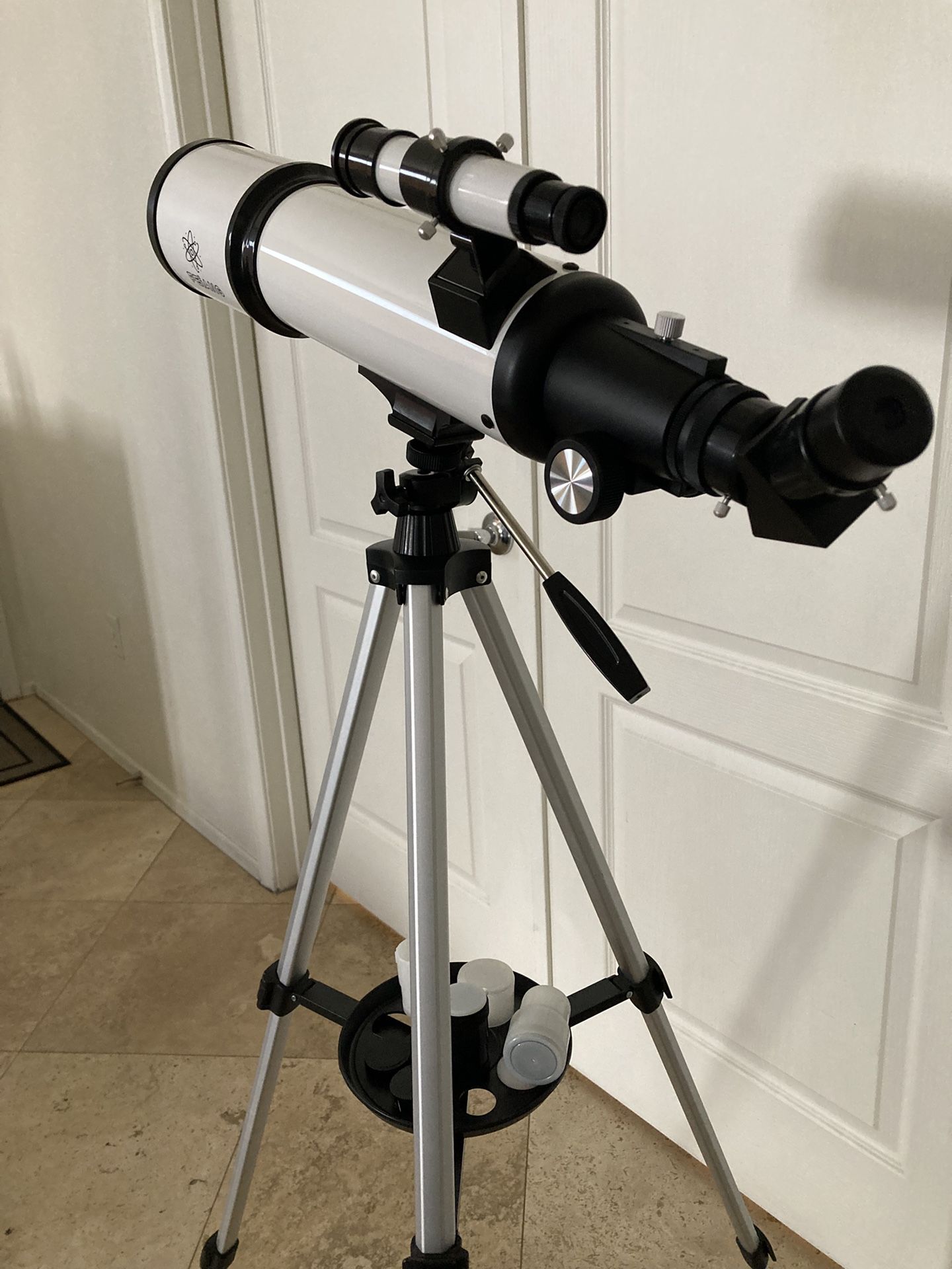 Telescope .. new like condition, barely used. Instructions included 10mm & 25mm lens’ phone adaptor and carrying case included. I can show you how to assemble & use it if you like
