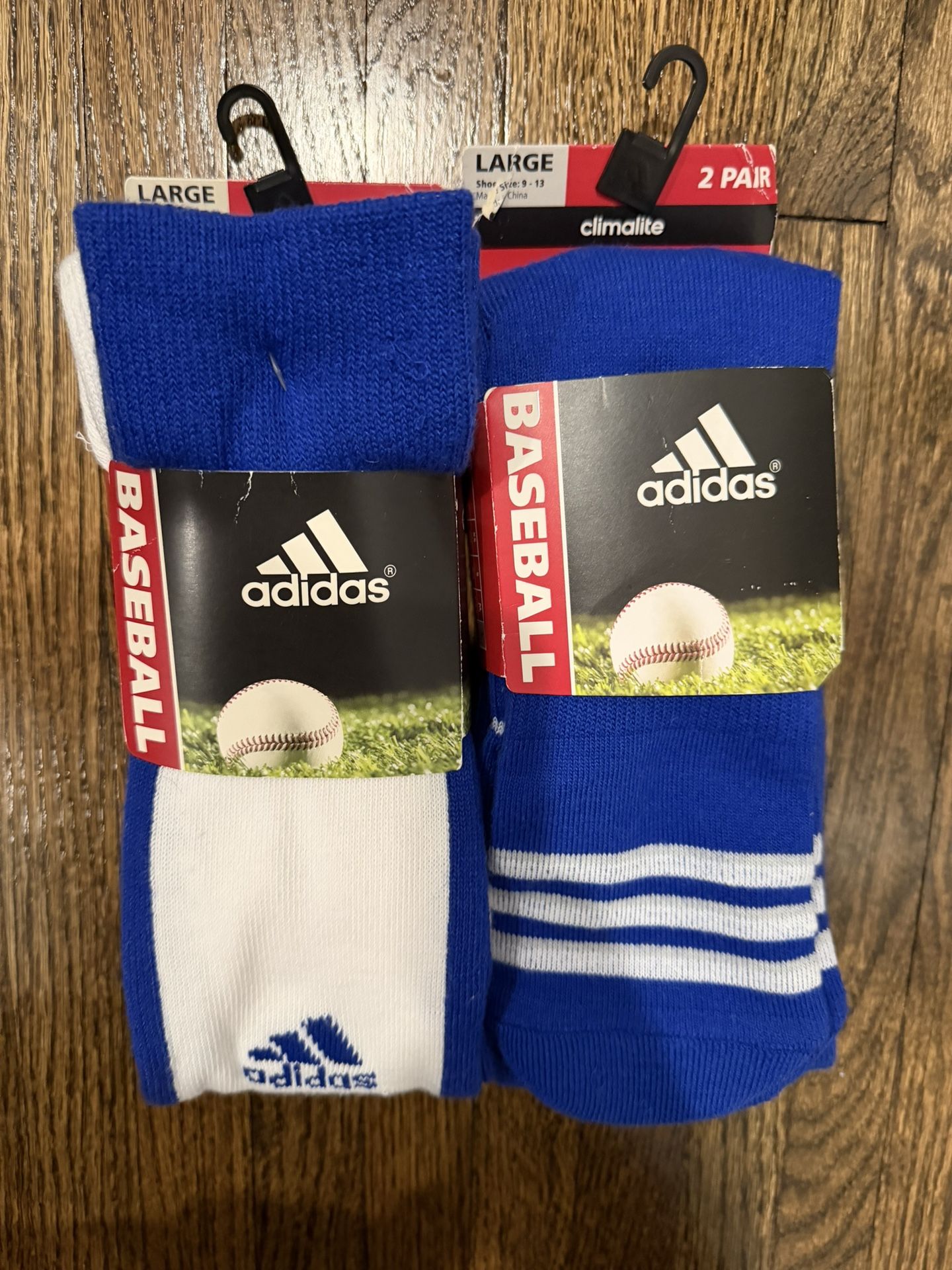Two NEW Climalite Adidas Baseball Socks. Large 9-13. Never used them. 4 pair socks total.