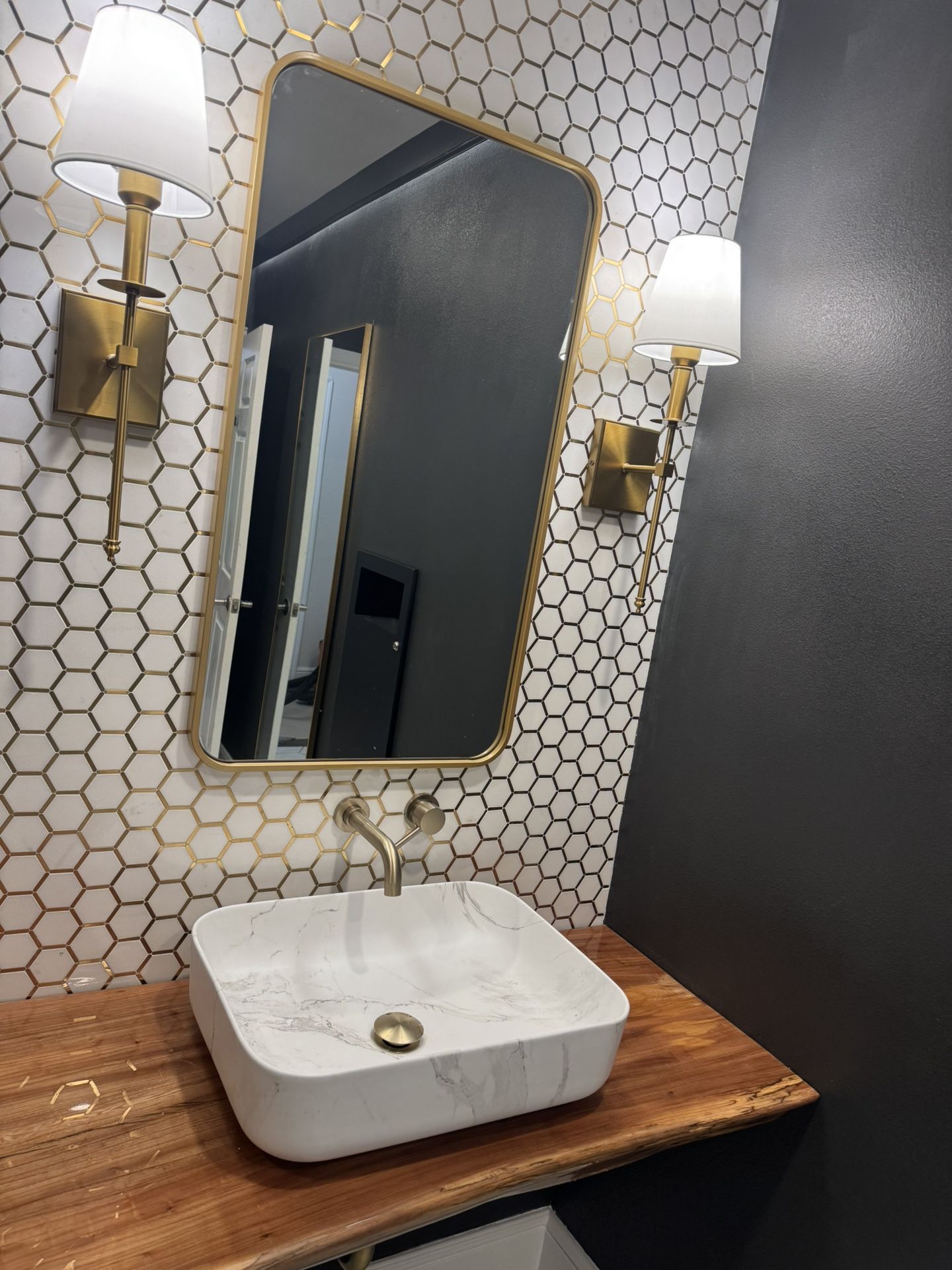 Countertop backplash shower floor