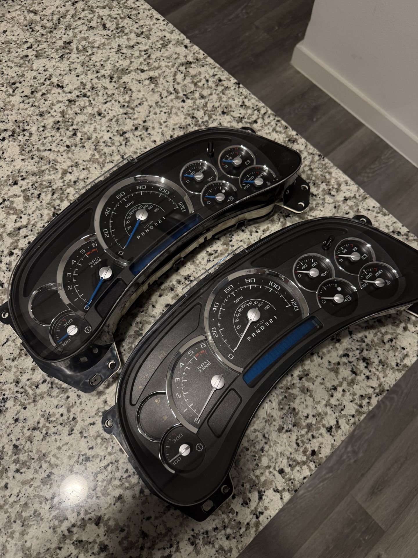 03/07 fully rebuilt escalade cluster all new gauges new lights custom needles trans temp working programmed to your mileage need your core