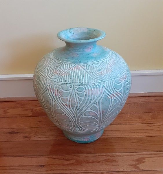 Large plant vase for decoration 18 ×14 inch 21 lb. Hand made vase crafted of good quality classic shape piece. Like new good condition. Se habla español.