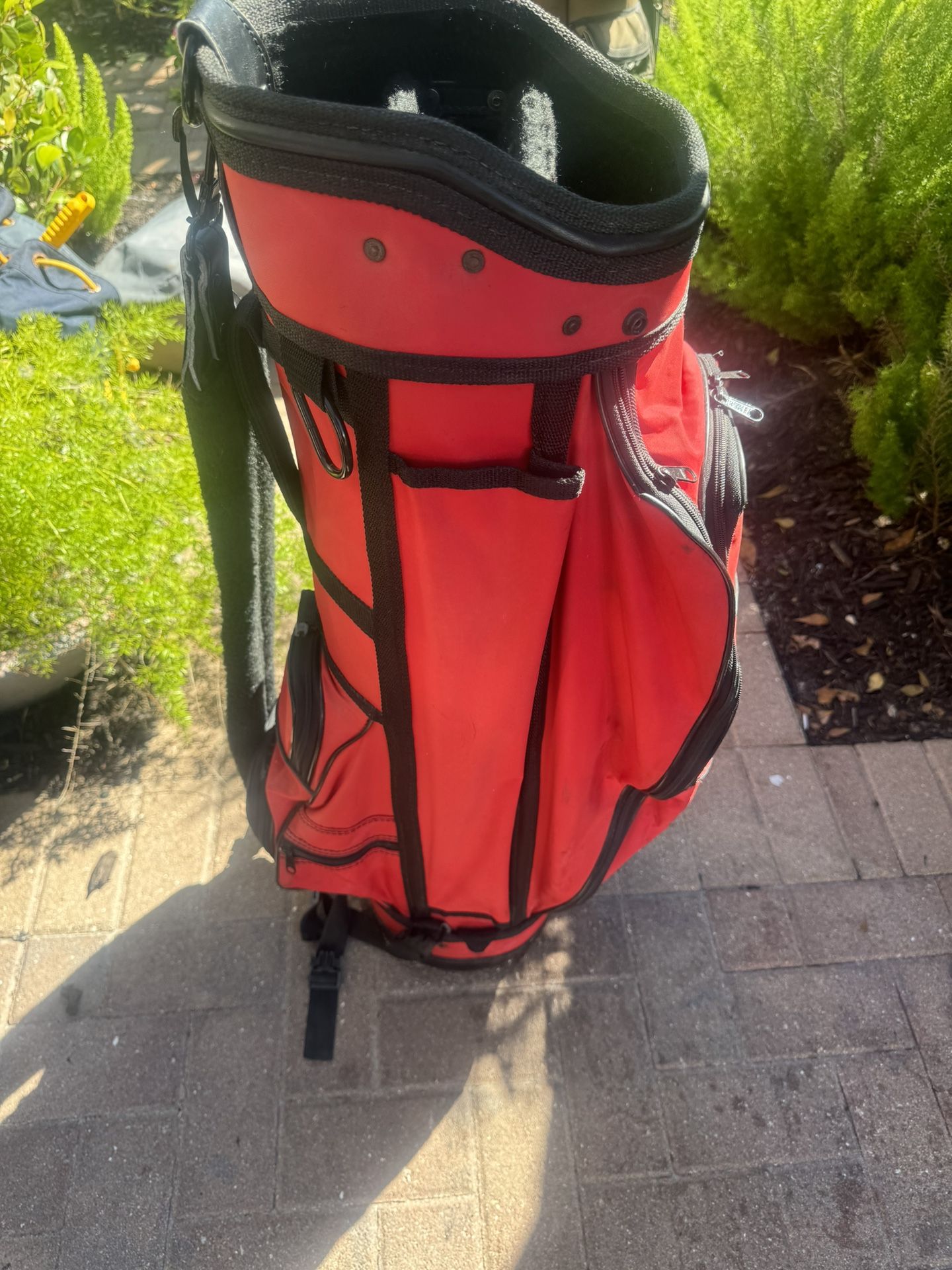 Golf Cart Bag Classic Style Comes with club dividers and shoulder strap . No clubs included See pictures for details and conditions