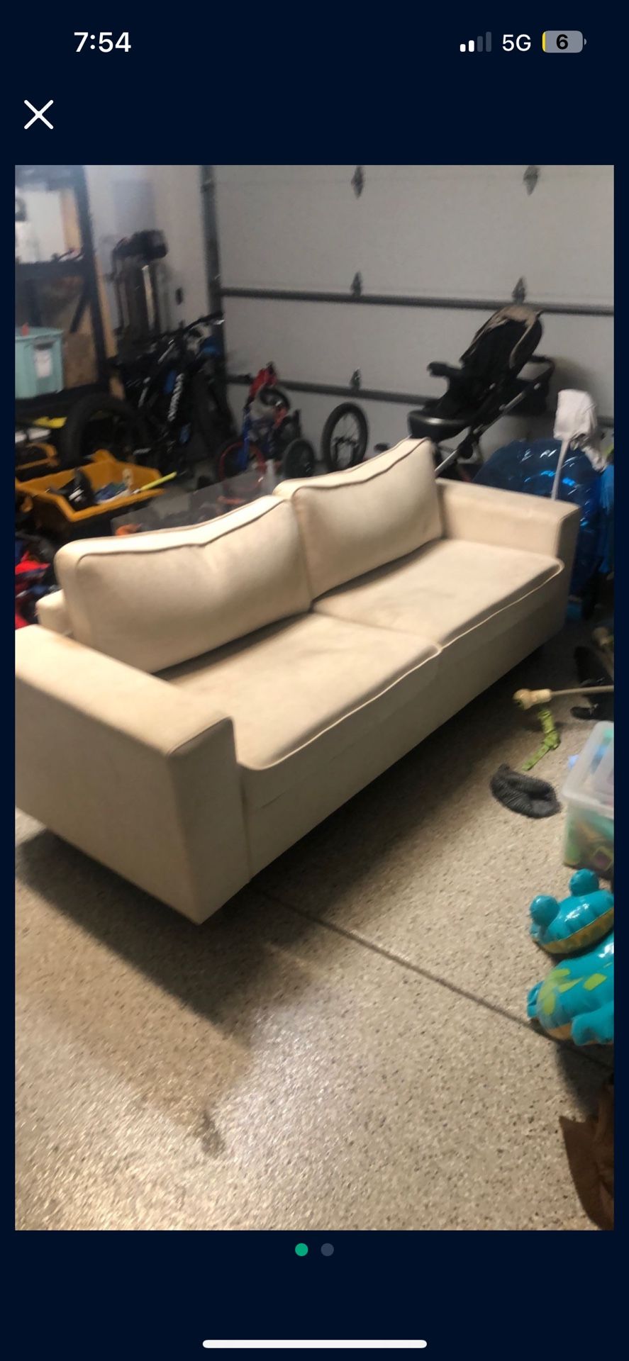 So much life left ! No rips or tears at all. Just needs a little steam clean and it’s brand new ! Purchased for over 1.5k. Pick up today or can delivery locally to Santa Ana. About 81 inches long and 38 inches deep