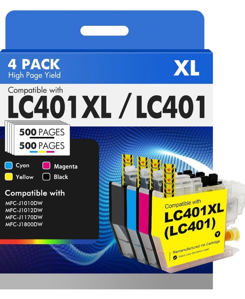 LC401 LC401XL MFC-J1010DW Ink Cartridges for Brother Printer LC 401 401XL for MFC-J1010DW MFC-J1170DW MFC-J1012DW MFC-J1800DW MFC J1010DW - 4 Pack High Yields Black Cyan Magenta Yellow