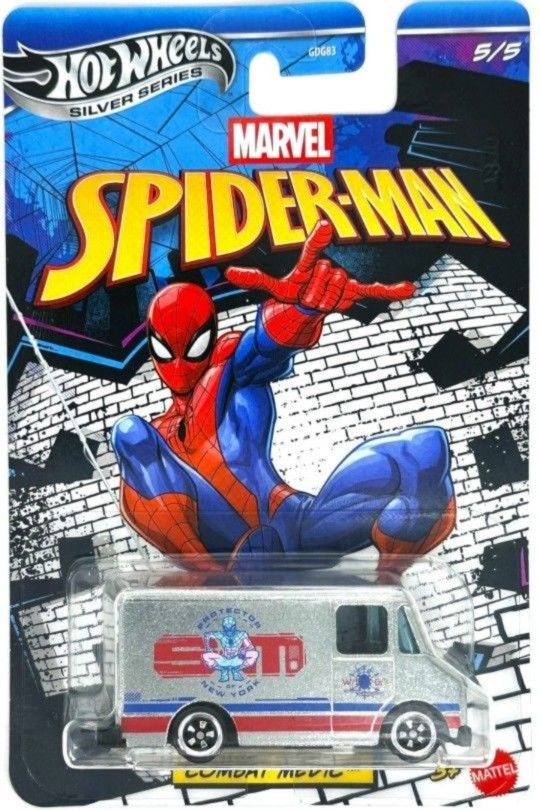 Mint condition! (Rare, hard to find) Hot Wheels 2026 SILVER SERIES Marvel SPIDER-MAN Comabt Medic 5/5