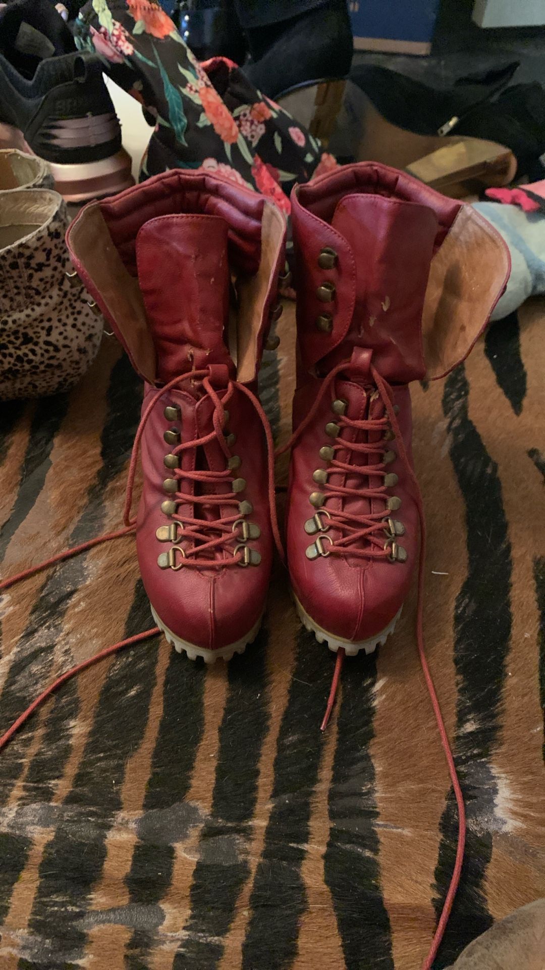 Red Jeffrey Campbell K2 Booties. Size 7.5 Little Wear And Tear But Not Bad. Super Cute Hiker Looking Boots.