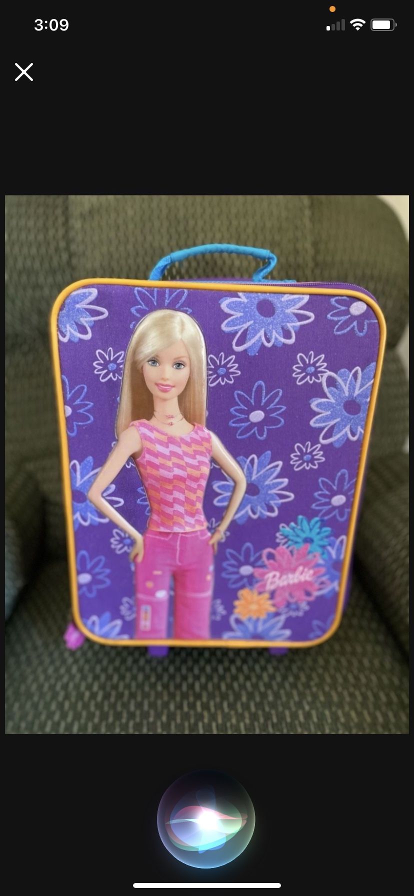 Barbie, pink and purple suitcase