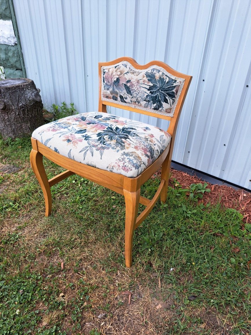 Lovely Quilted Cushioned Low Back Parlor Chair this beautiful chair has a Quilted floral pattern. Seat is 20" high x 22" w x 16" deep. Chairs full height is 27". Has Victorian style legs