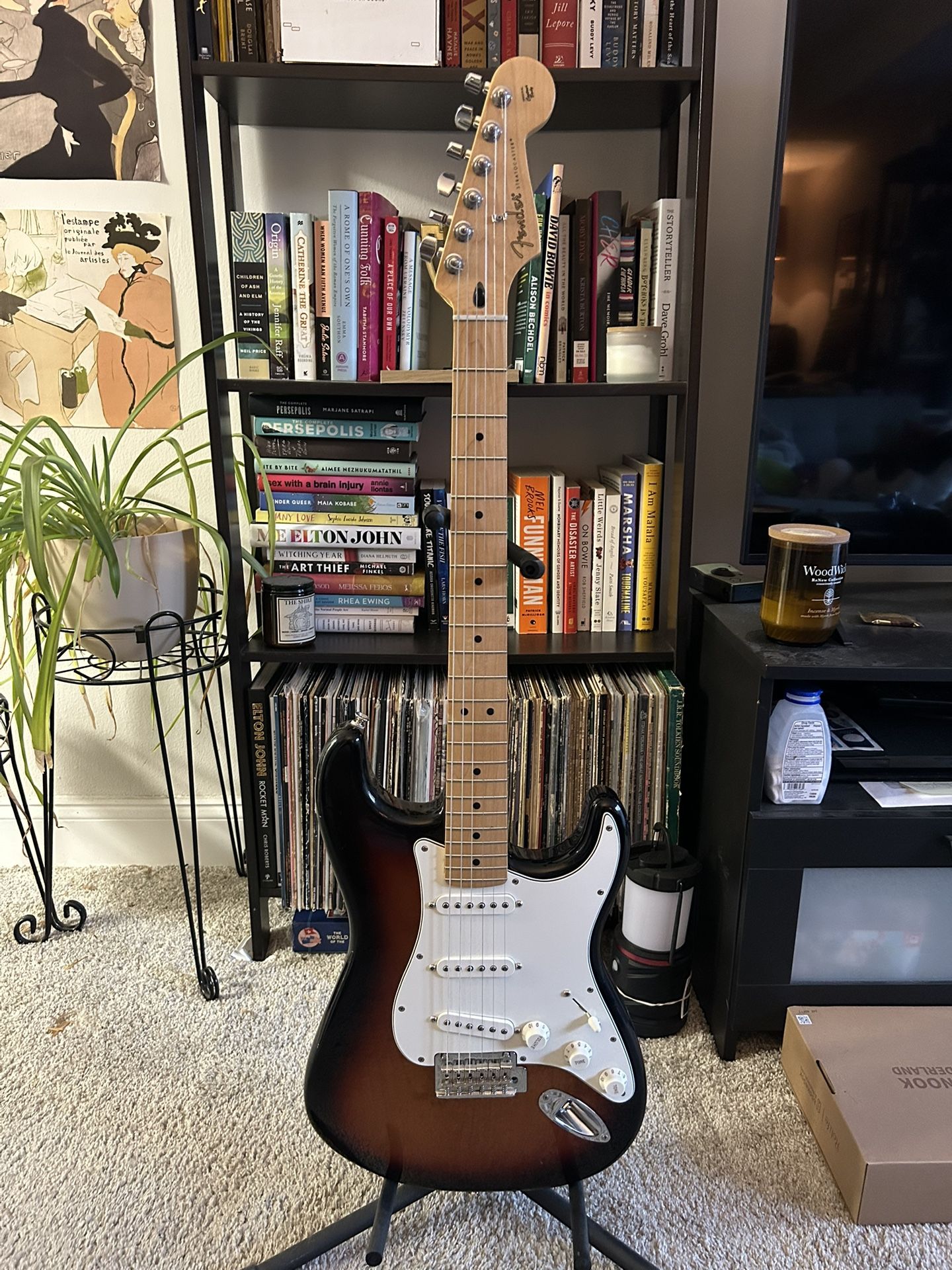 3 color sunburst, maple fingerboard Model # 01(contact info removed)0 Made in Mexico MSRP $700 Info from Fender website: Fingerboard Radius: 9.5" (241 mm)] Bridge Pickup: Player Series Alnico 5 Strat® Single-Coil Scale Length: 25.5" (648 mm) Dimensions: 4.50x15.20x41.90 IN