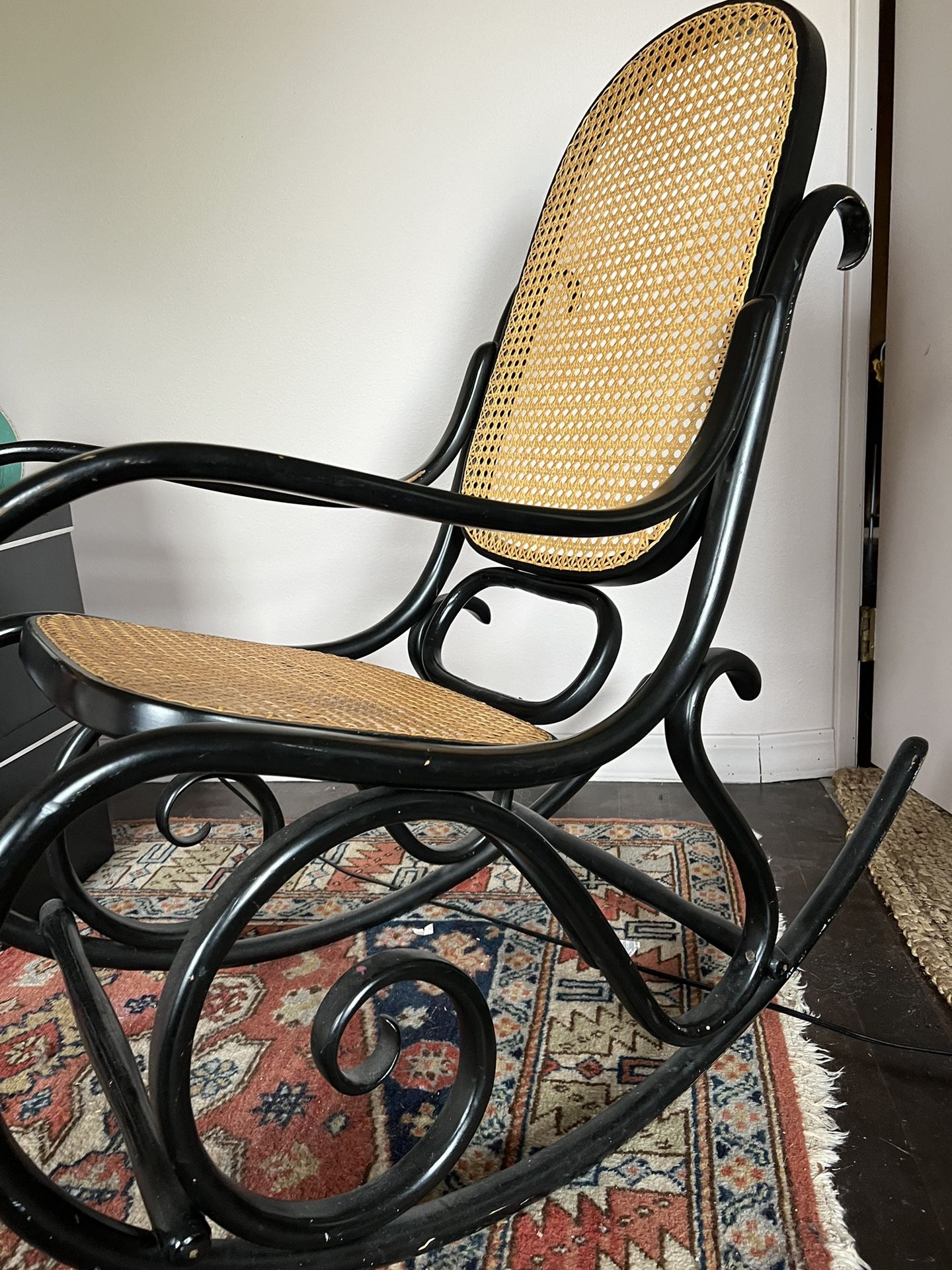 Bentwood rocking chair in rare black color, minor wear and tear on arms otherwise good condition