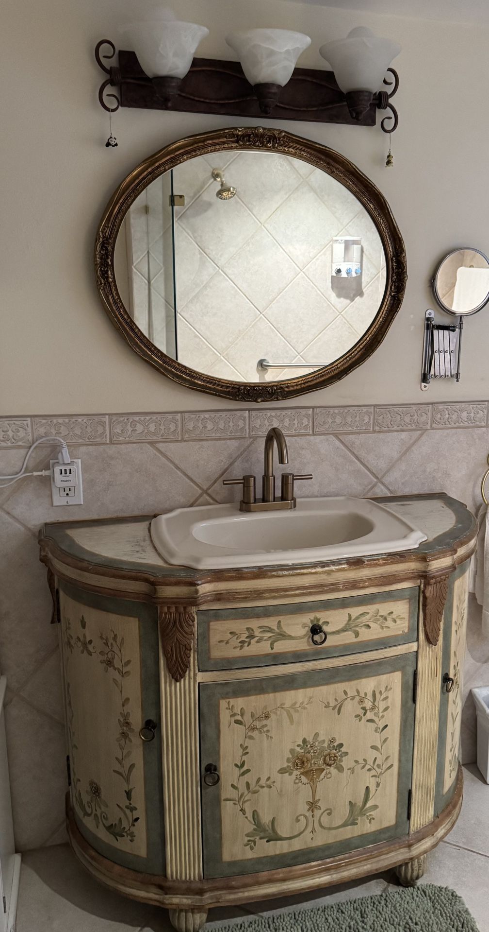 Vanity 44” wide, 35”tall All 3 items Vanity, Mirror, Light must be GONE BY FRIDAY Jan 22, 2025