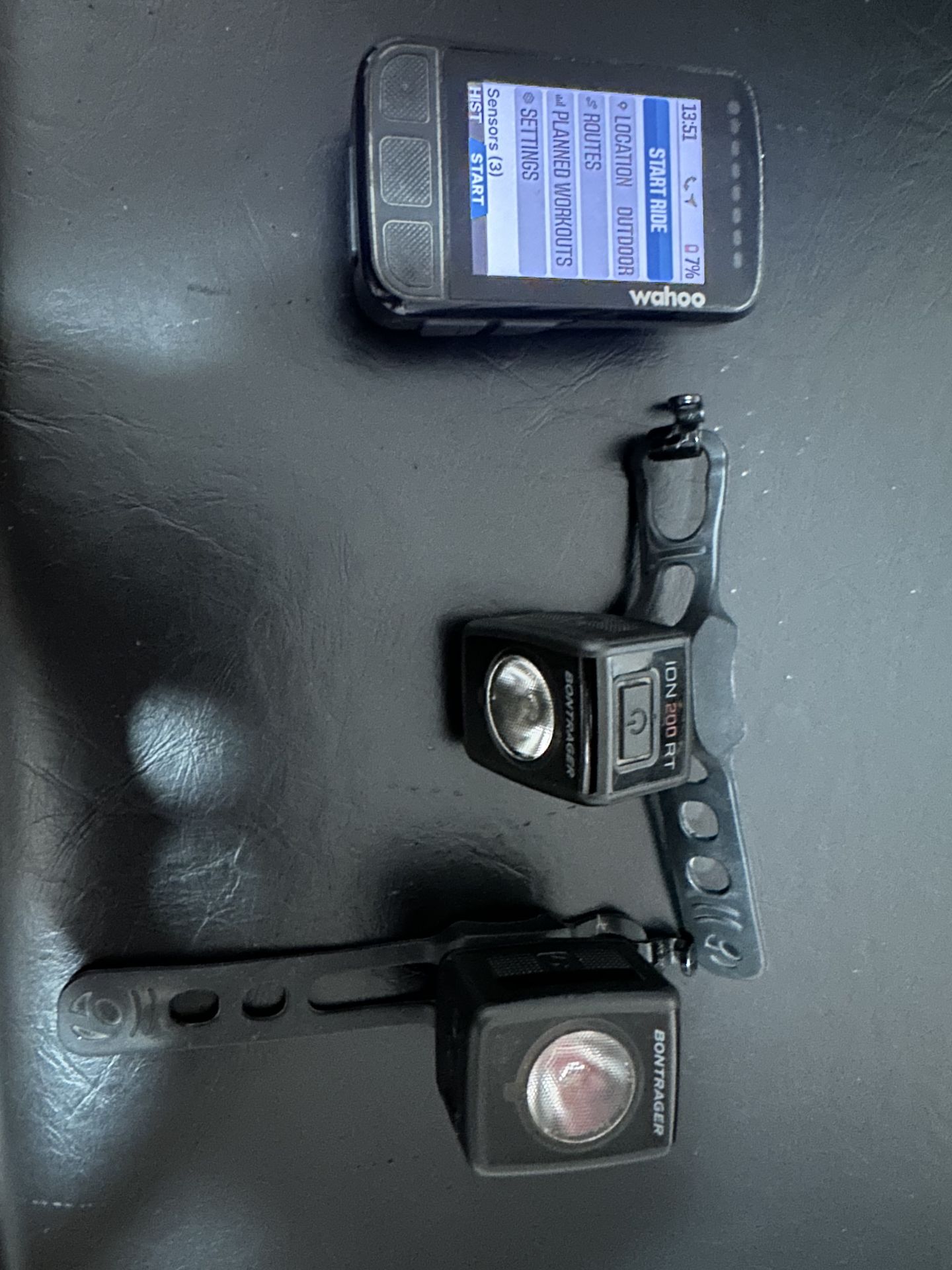 Element bolt v2 with no mount and front and back bontrager lights with straps. All work perfectly fine got them at trek but no longer ride.