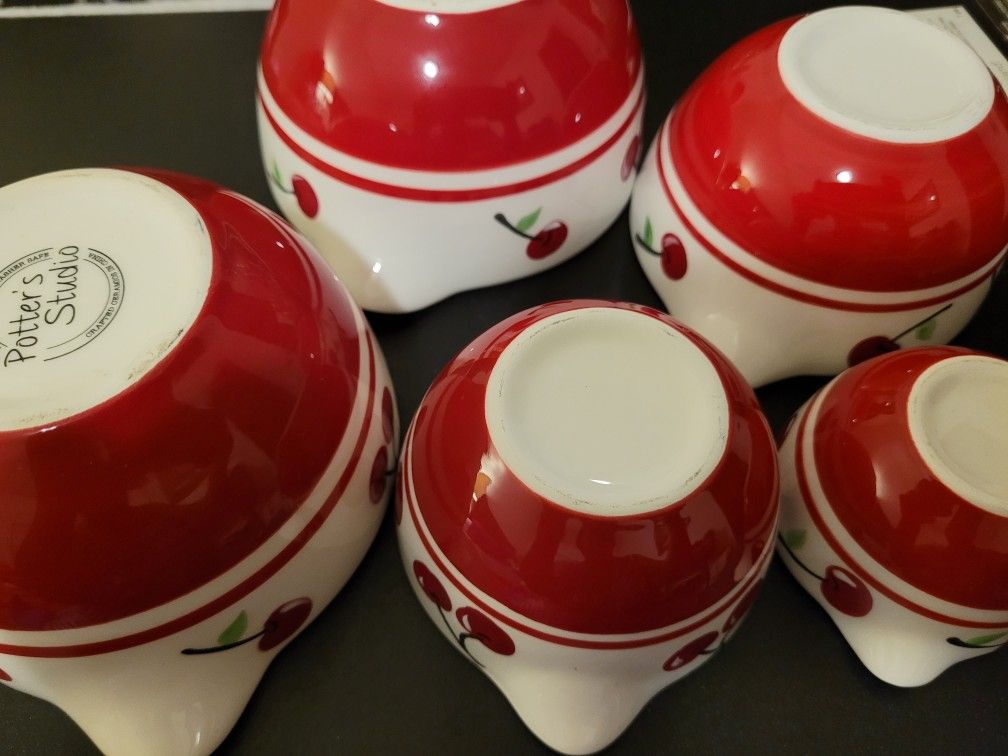 Set of 5 ceramic measuring cups with cherries. New from Potter's Studio