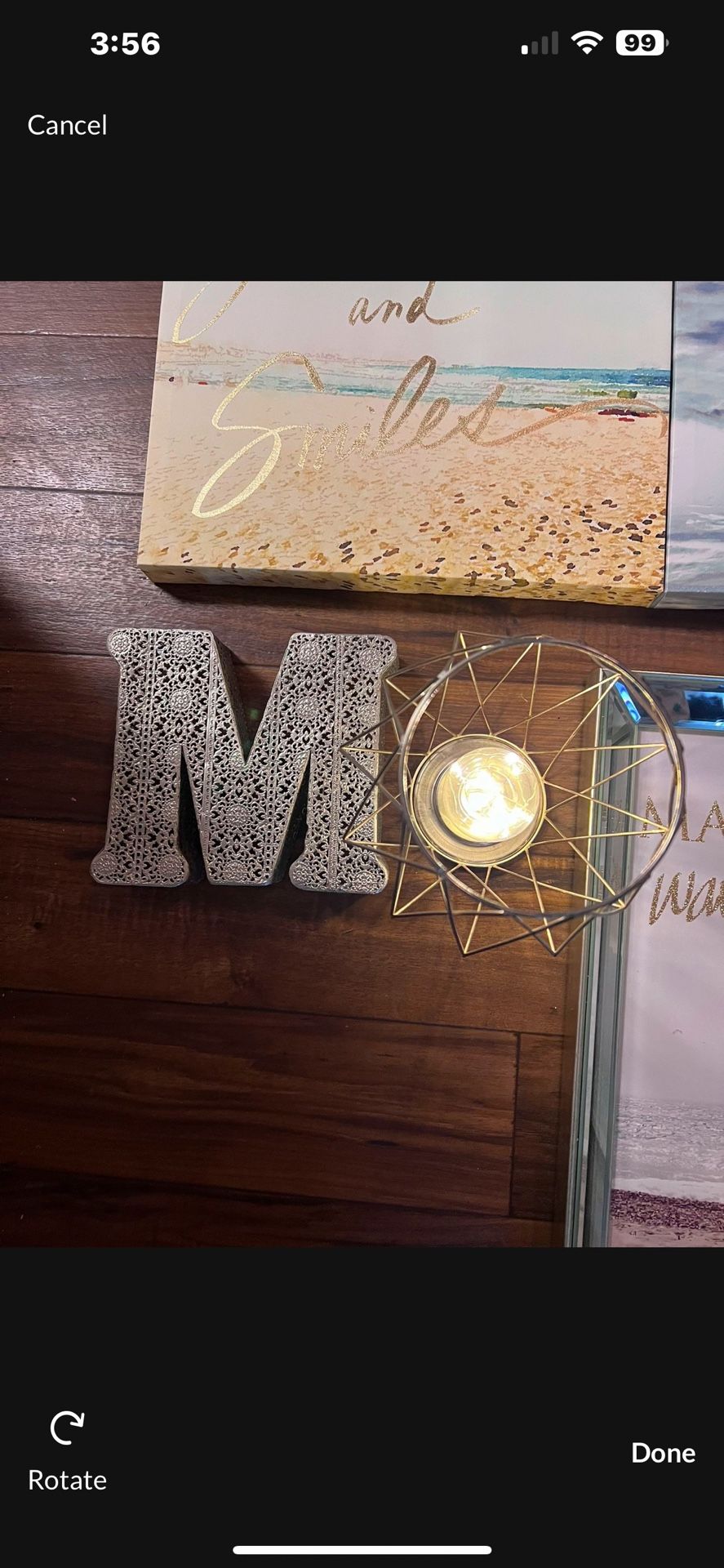 Used cute decorations for a girls room. My stepdaughter had this in her room but she outgrew it. Mermaid theme. Comes with 2 frames, 1 glass long frame, 1 small lamp and one initial wire M. Pick up only.