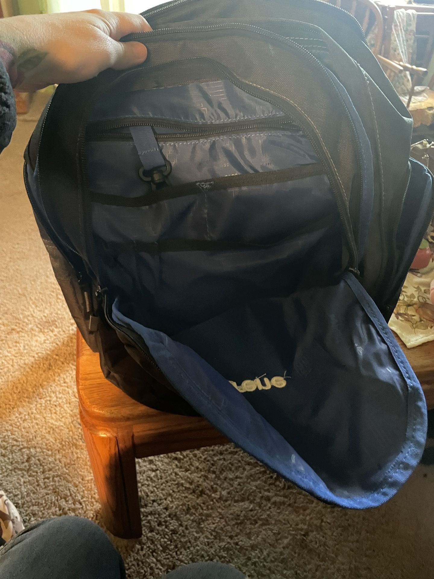 Brand new laptop back pack, black and blue. Side zipper pockets. 3 pockets 100 obo