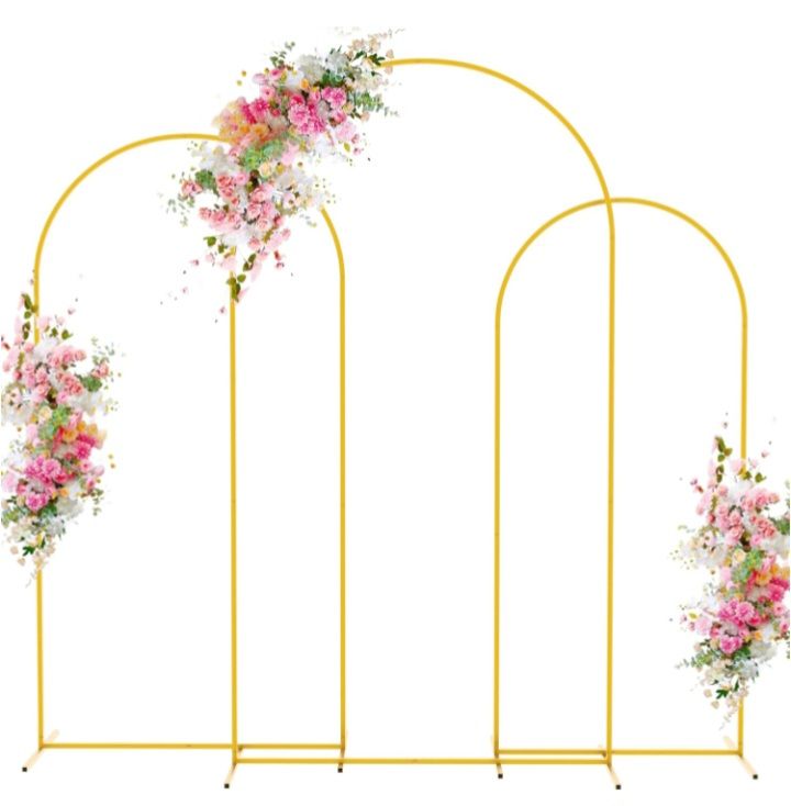 Wokceer Wedding Arch Backdrop Stand 7.2FT, 6.6FT, 6FT Set of 3 Gold Metal Arch Backdrop Stand for Wedding Ceremony Baby Shower (flowers not included)