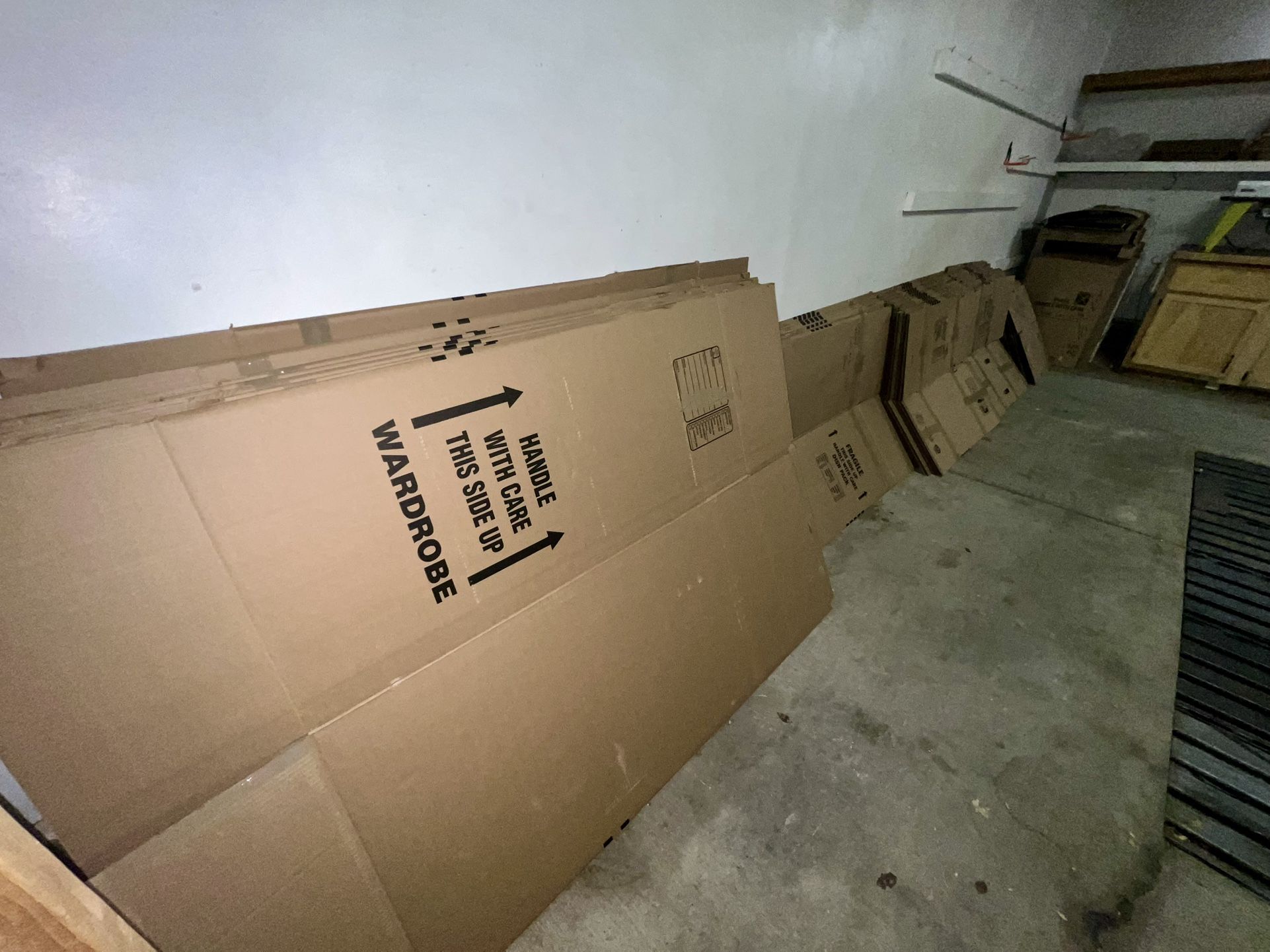 Moving boxes and supplies for a 3-4 BR house move! BUY THE WHOLE LOT FOR $175! You would pay over $450 retail or $550 through a moving company for these. 12 garment boxes: $7/ea Six dish barrels: $6/ea 19 large boxes: $5/ea 17 medium boxes: $4/ea 17 small boxes: $3/ea 10 medium modular TV / frame / mirror boxes: $3/ea 6 bottle or vase boxes with air pack inserts: $3/ea Stack of insulated packing paper: $3 Small leftover roll of bubble wrap: $1 2 large stacks of premium packing paper in good condition: $5/ea Pick up in North Sandy near High Point Park.