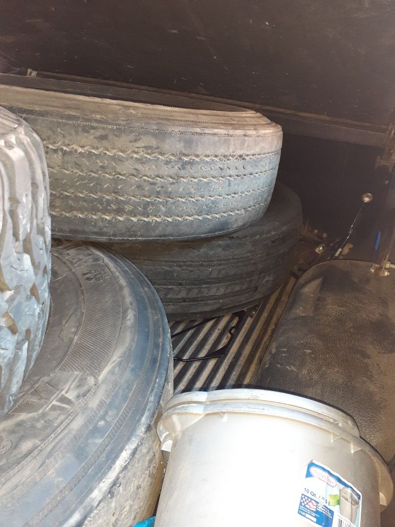 3 SEMI TRUCK TIRES (22.5) WORKS GOOD FOR SPARE TIRE LIKE 20% LIFE LEFT. 150 OBO