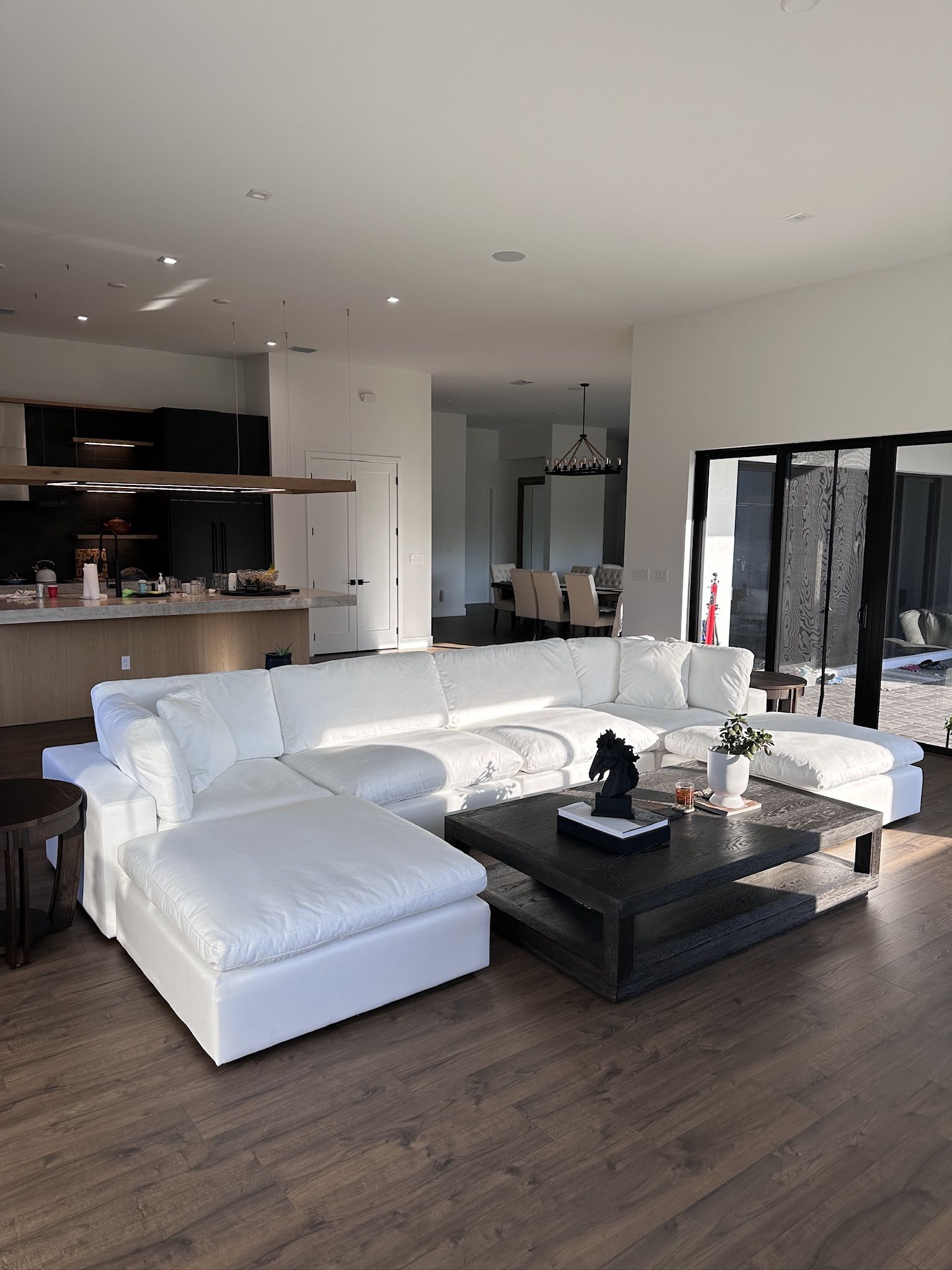 This is a brand new modular cloud couch! This setup measures 170” x 84” All pieces are fully modular and can be configured in multiple ways! All cushions covers come off and are machine washable! Spill/stain resistant technology with all cushion covers!