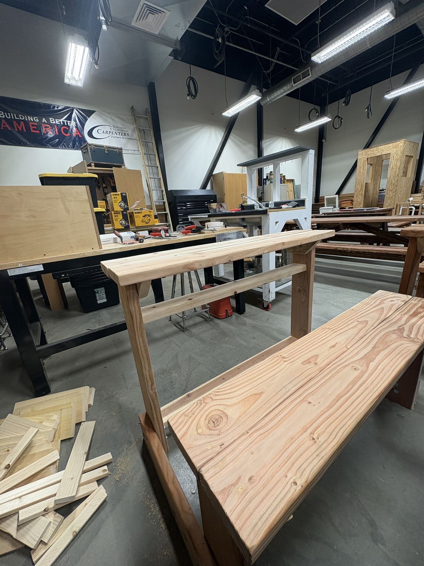 A little of redwood and mostly cedar wood Can hold 2-3 people