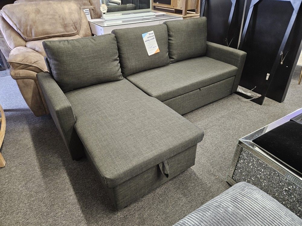 Brand New Sectional Pull Out Bed Dark Grey Storage Chaise $379 + Tax Elis Fur Funance Available 3 Months Same As Cash Open 11 to 7 Pm