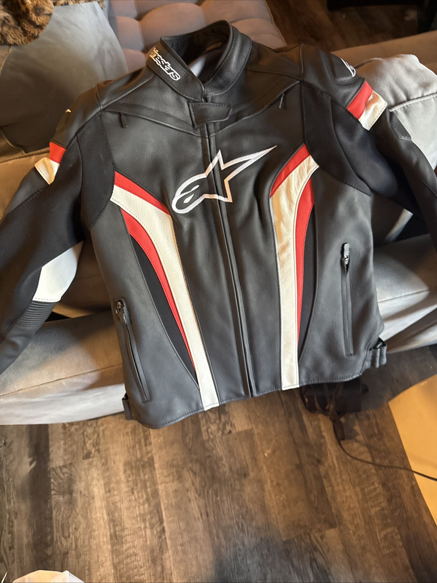 Alpinestars Stella GP Plus R V2 women's leather motorcycle jacket in a black, white, and red size 6