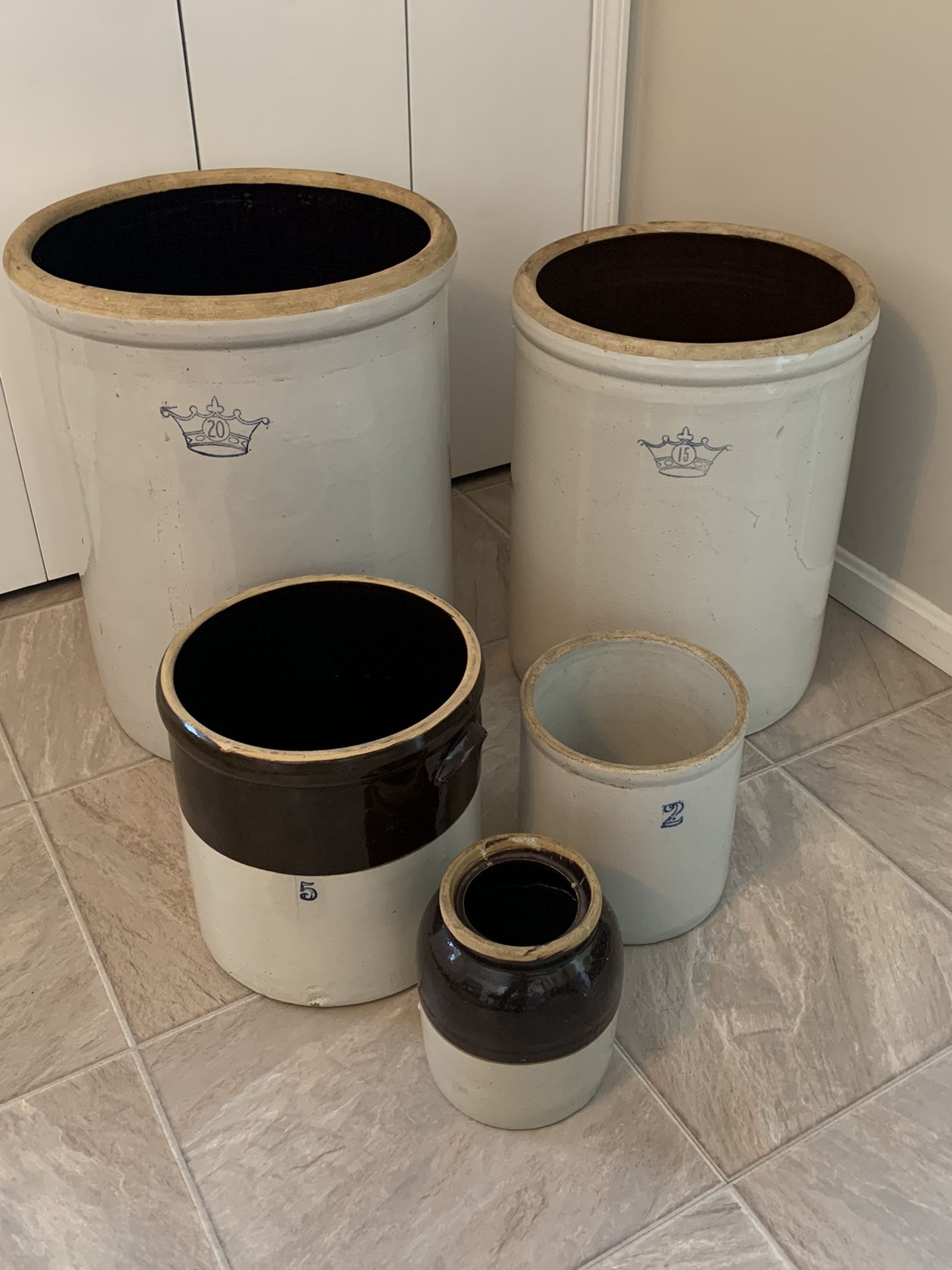 Vintage Pottery Crocks Blue Crown Ransbottom Pickle Crock Farm House Wine Making See DESCRIPTION 4 PRICES