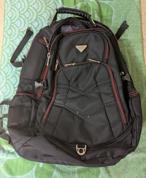 FREEBIZ TRAVELER back pack only used a few times for work. Enough pockets and zippered pouches to store - carry everything but the kitchen sink. USB charging cable port outside with inside cable for stored devices. Holds up to 18" laptop. Very well made good looking backpack. Bag weight is about 3 lbs Water proof 1680D ballistic nylon construction. My location for cash purchase and pickup is Fountain Hills or Tempe. PRICE IS FIRM