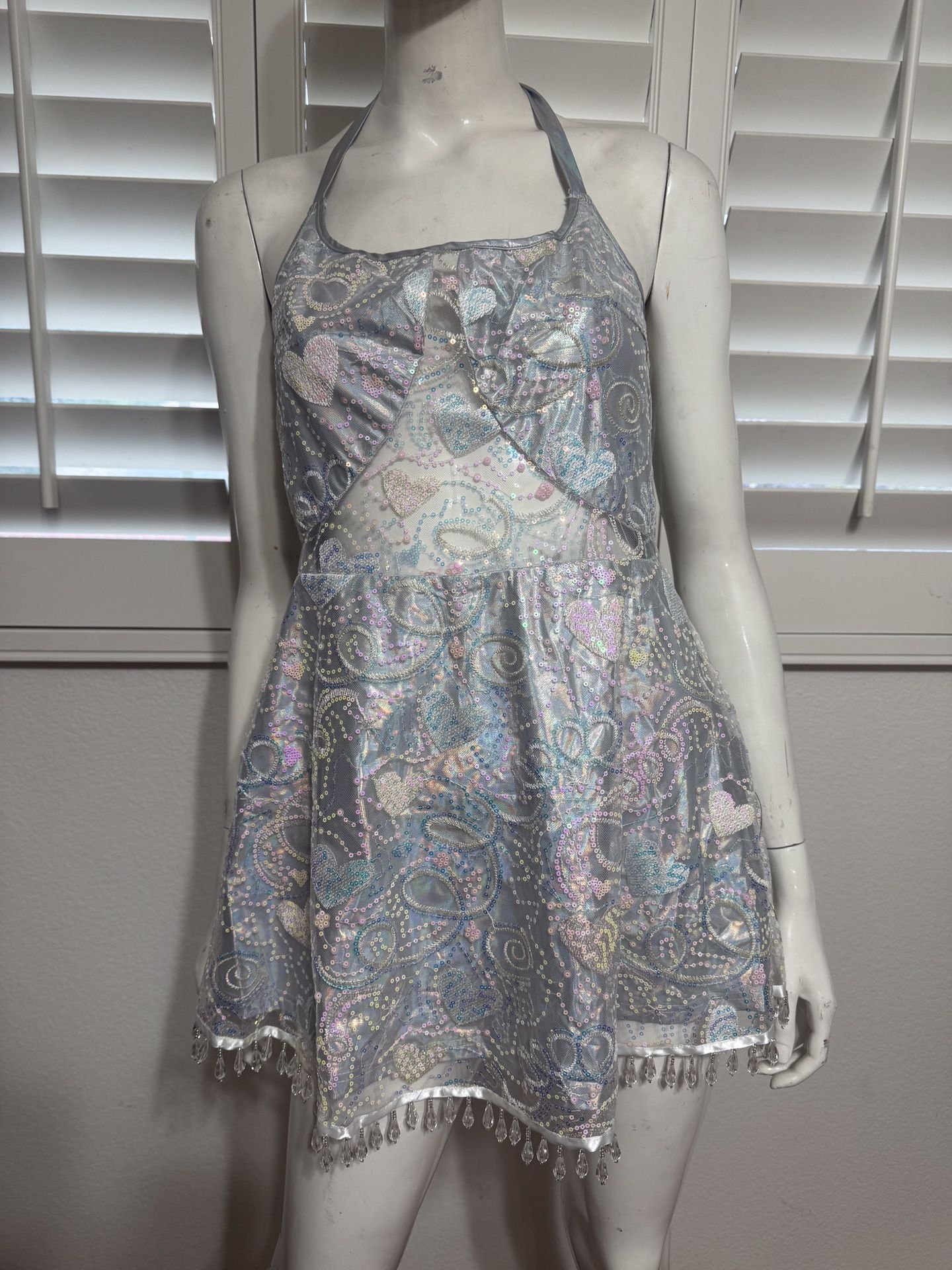 New xl beaded sequin iridescent embroidered lace dress festival boho rave short