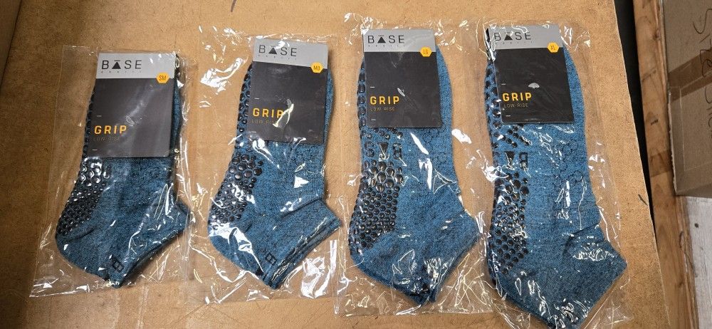 Description: Brand new BASE grip crew socks – never worn, still in packaging. ✔️ Non-slip grip bottom (great for gym, yoga, Pilates, or around the house) ✔️ Comfortable, breathable material ✔️ Low rise / crew style ✔️ Multiple sizes available: S, M, L, XL ✔️ Multiple pairs available (blue) Perfect for workouts, lounging, or anyone who wants extra traction on floors. $4 each