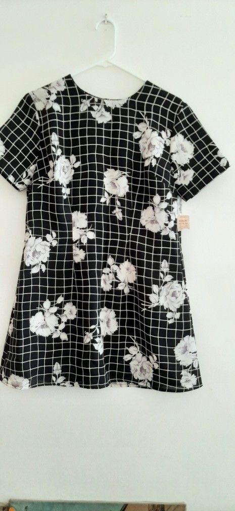 Vintage L T Sport mini dress 12P Black and white checkered & floral pattern, size 12P. Purchased at Lord & Taylor. New.