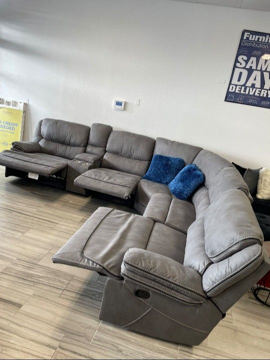 SECTIONAL RECLINING SOFA WITH THREE RECLINERS!!! TEXT 30777 TO 22462 FOR $50 DOWN!!!DELIVERY TONIGHT!!!