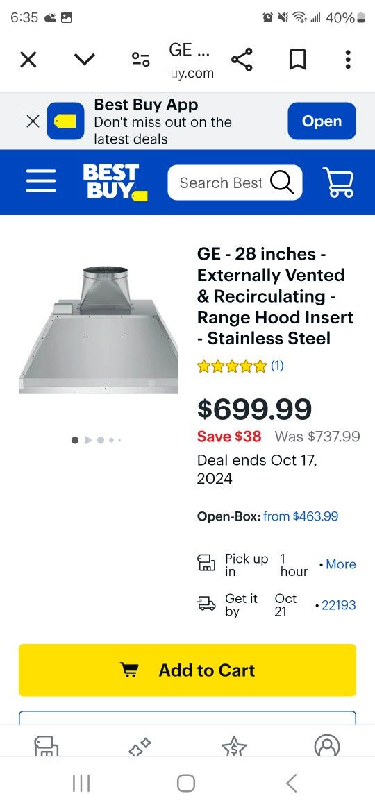 GE 28 inch. externally vented & recirculating range hood insert stainless steel.