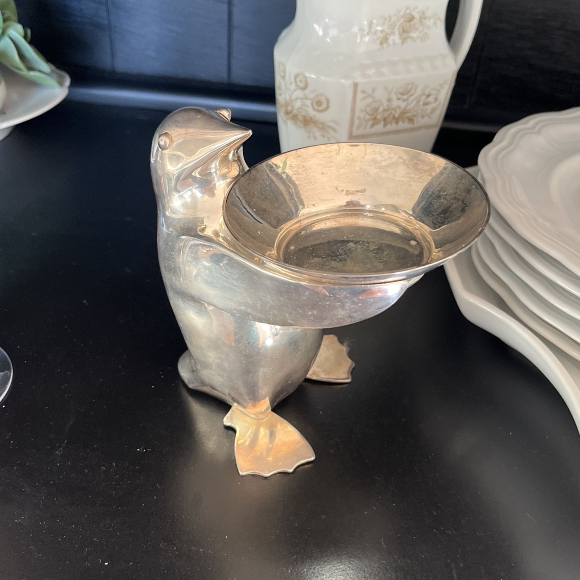 Restoration Hardware penguin I used with a candle he’s 6 inches tall and about 6 inches wide little tray is removable
