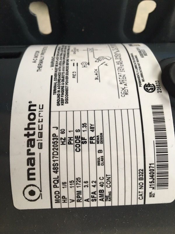 1/6 hp 3.6a 115v 1725rpm blower motor