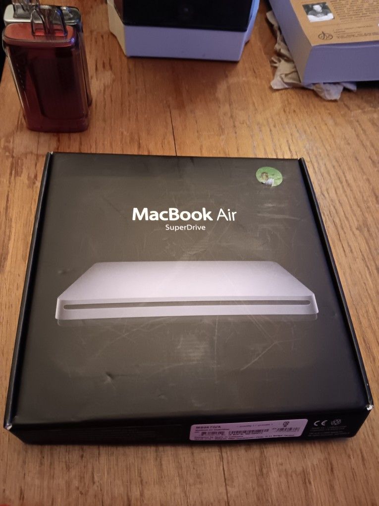 Apple (MacBook air) superdrive Capable CD, DVD, burner, reader, player. This superdrive is specifically for MacBook air. Portable Weighs 1.1lbs