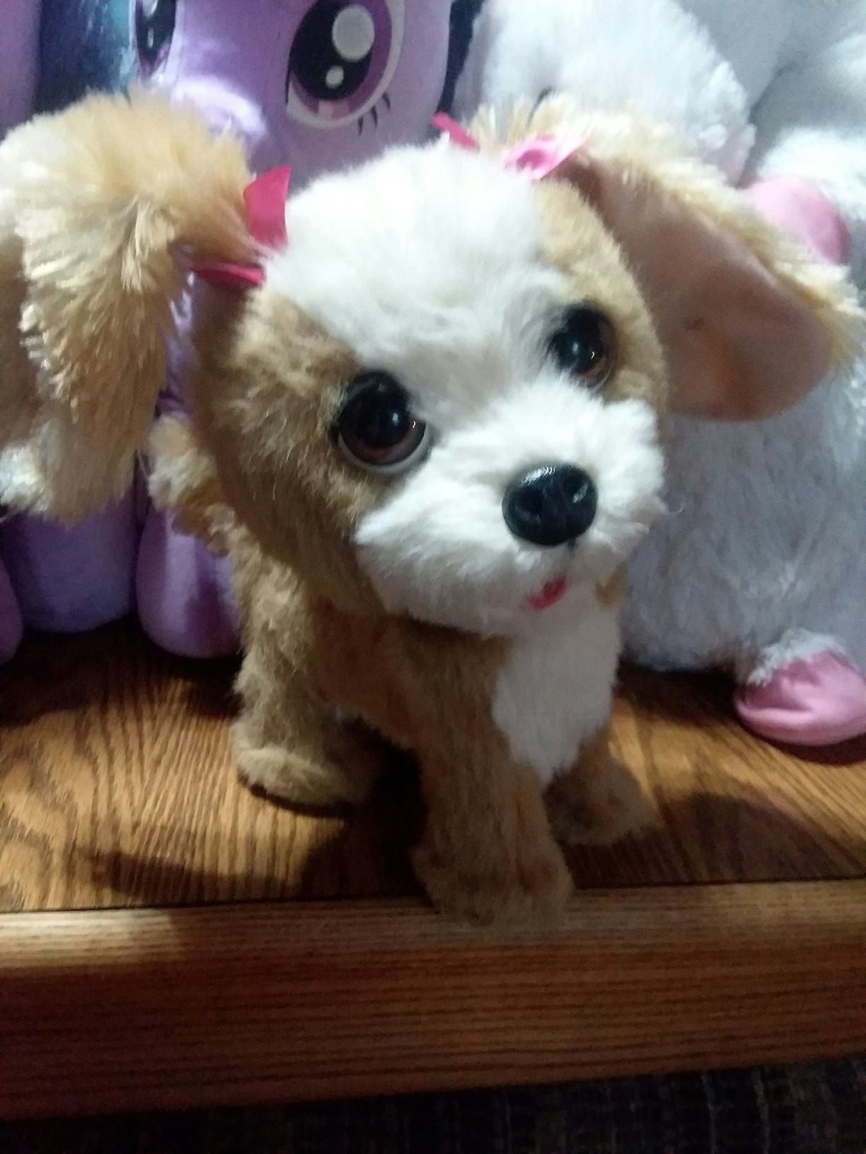 For real puppy barks jumps up and down while turning around every time you scratch it's head