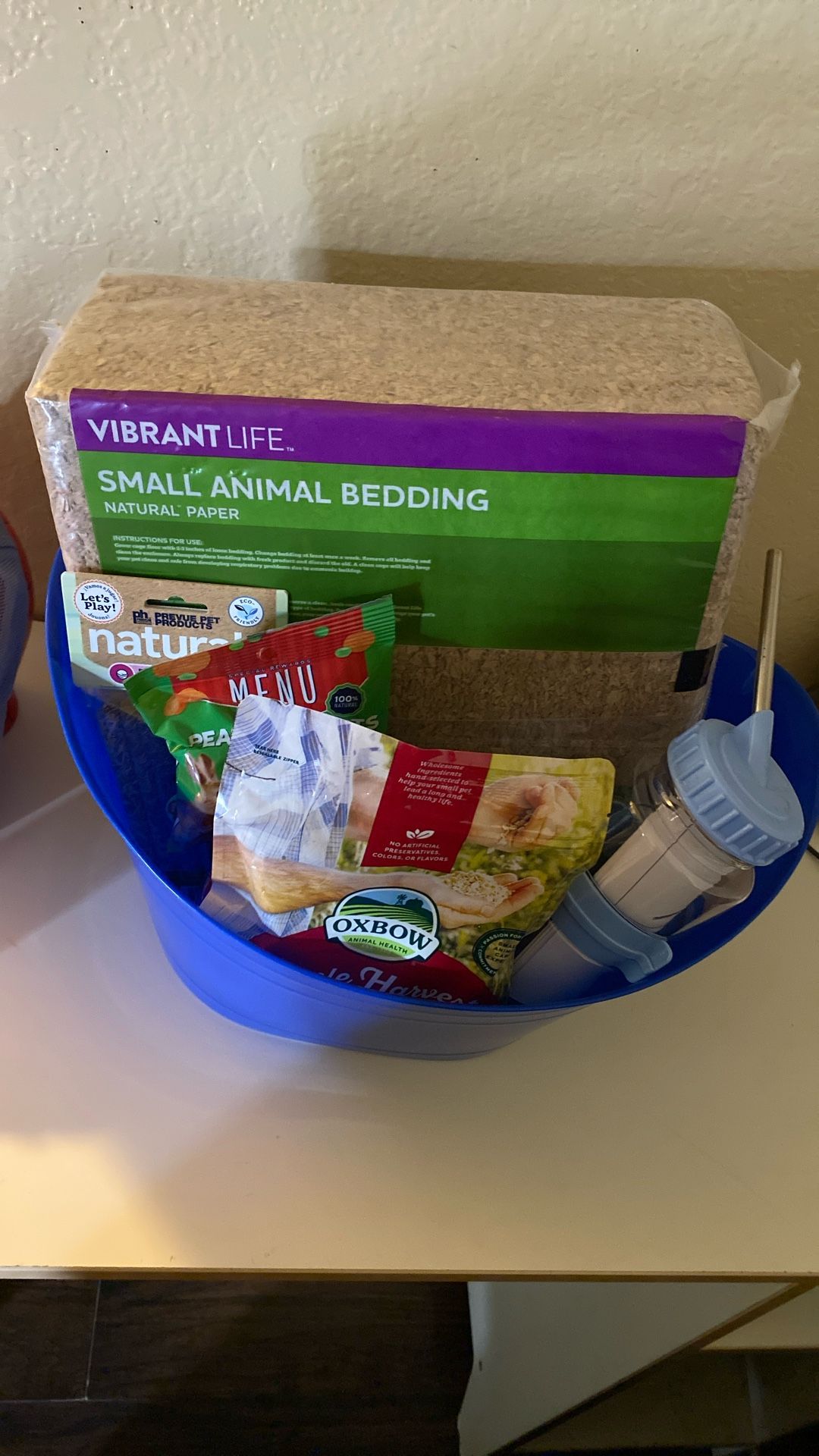 Bedding Food Water bottle Never used all new don’t need anymore Free- must pick up (Basket not included)