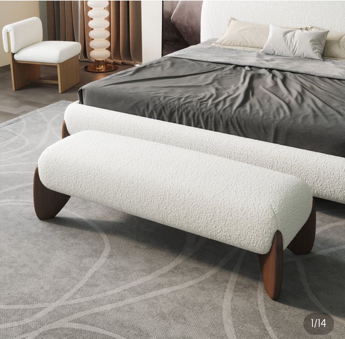 Curva Boucle Upholstered Bedroom Bench New In Box