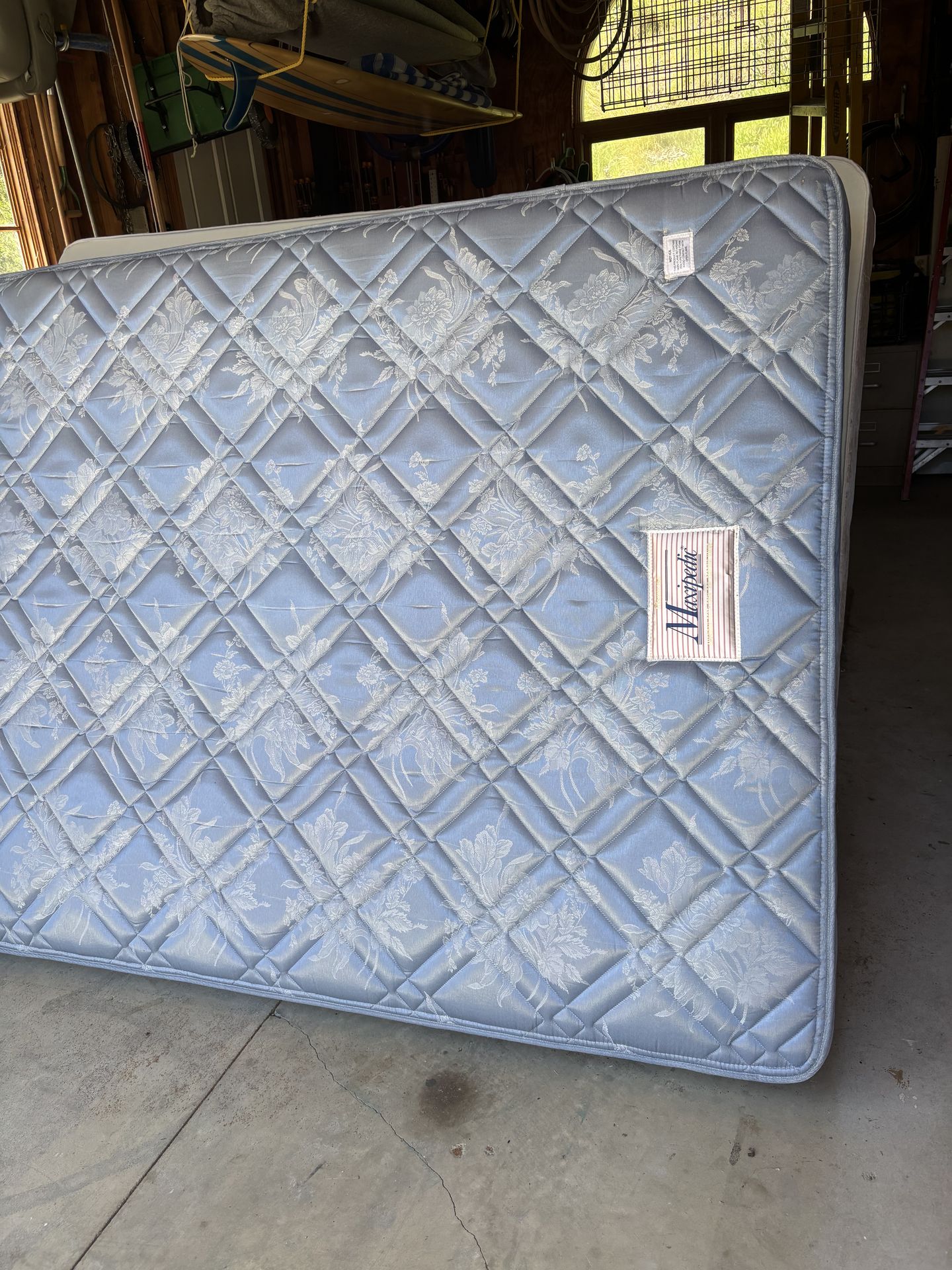 Queen mattress and box spring. Comes w metal frame .